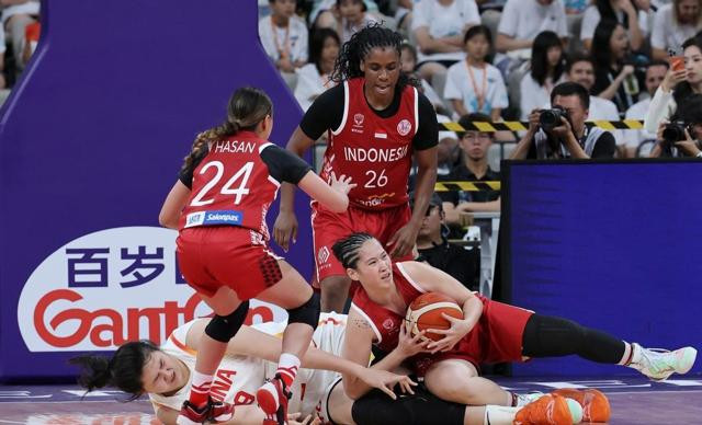 可她手伸慢了那么半拍,硬是让个子小一圈的印尼队员给窜过去拨走了。