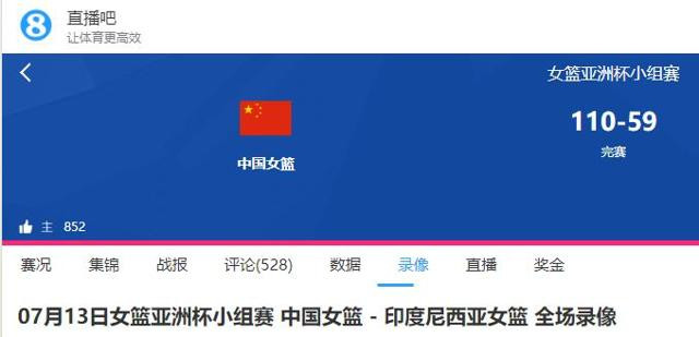 直播吧——07月13日女篮亚洲杯小组赛 中国女篮-印度尼西亚女篮 全场录像
