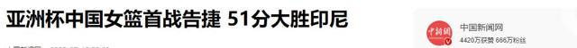 中国新闻网——亚洲杯中国女篮首战告捷 51分大胜印尼